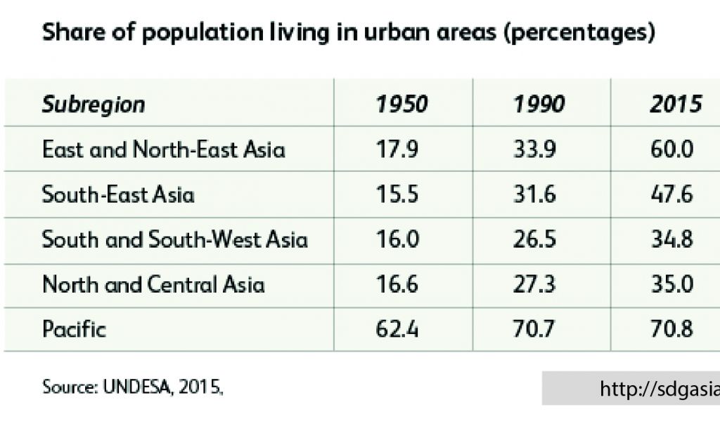 The share of urban population increased much faster in East and North-East Asia than in other subregions in the decades before 2015 (table 1.1).