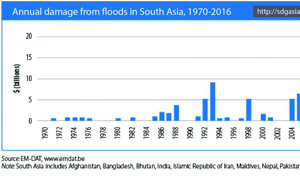 Annual damage from floods in South Asia, 1970–2016