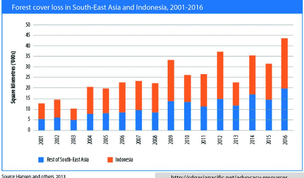 Deforestation and forest degradation are major issues for countries across the Asia-Pacific region, but the problem is particularly alarming in Indonesia, where more than 227,000 square kilometres – more than twice the size of the Republic of Korea – were lost between 2001 and 2016.
