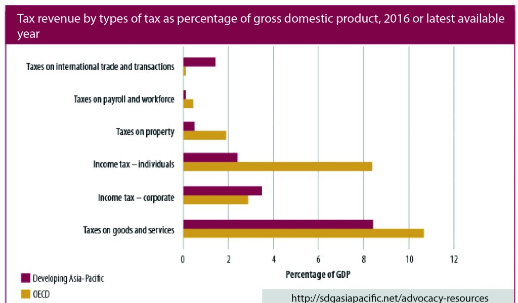Tax revenue by types of tax as a percentage of gross domestic product, 2016 or latest available year