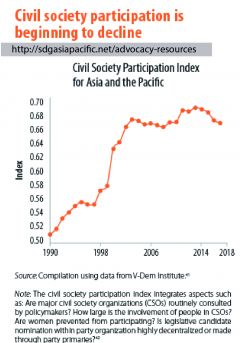 Accelerating progress: An empowered, inclusive and equal Asia and the Pacific responds to the theme of the 6th Asia Pacific Forum on Sustainable Development and the 2019 session of the high-level political forum on sustainable development. The report proposes a framework of four synergistic elements necessary to advance inclusion, empowerment and equality: rights and justice; norms and institutions; resources and capabilities; participation and voice.